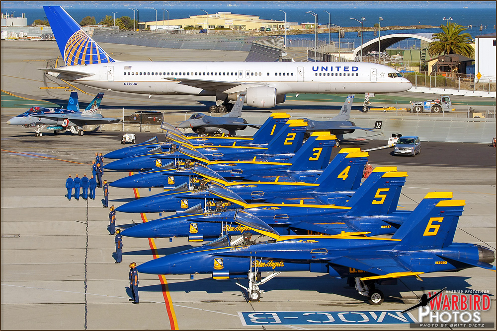 Part 2 of the 2012 Fleet Week Airshow in San Francisco. This second gallery features the United Air Lines family day held at San Francisco Airport where all the airshow aircraft that performed over the bay were staging from including the US Navy Blue Angels, F-22 Raptor, Canadian CF-18 Hornet, Super Hornets, and many more! Special United airliners and warbirds attended the event as well.