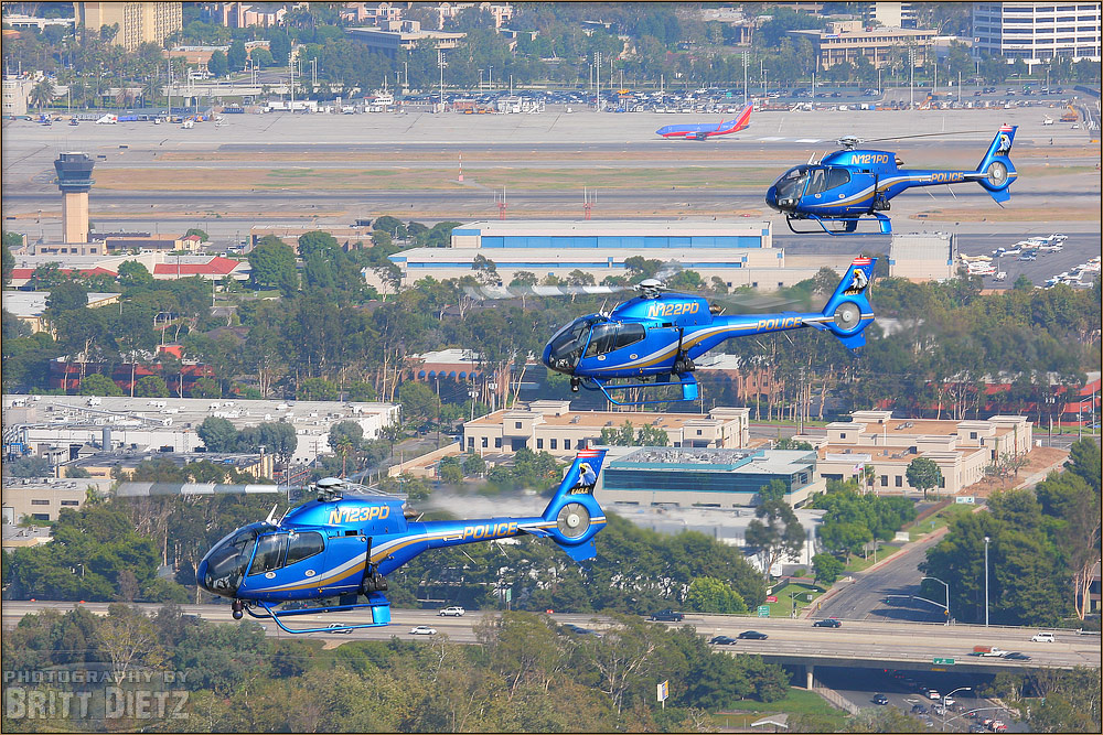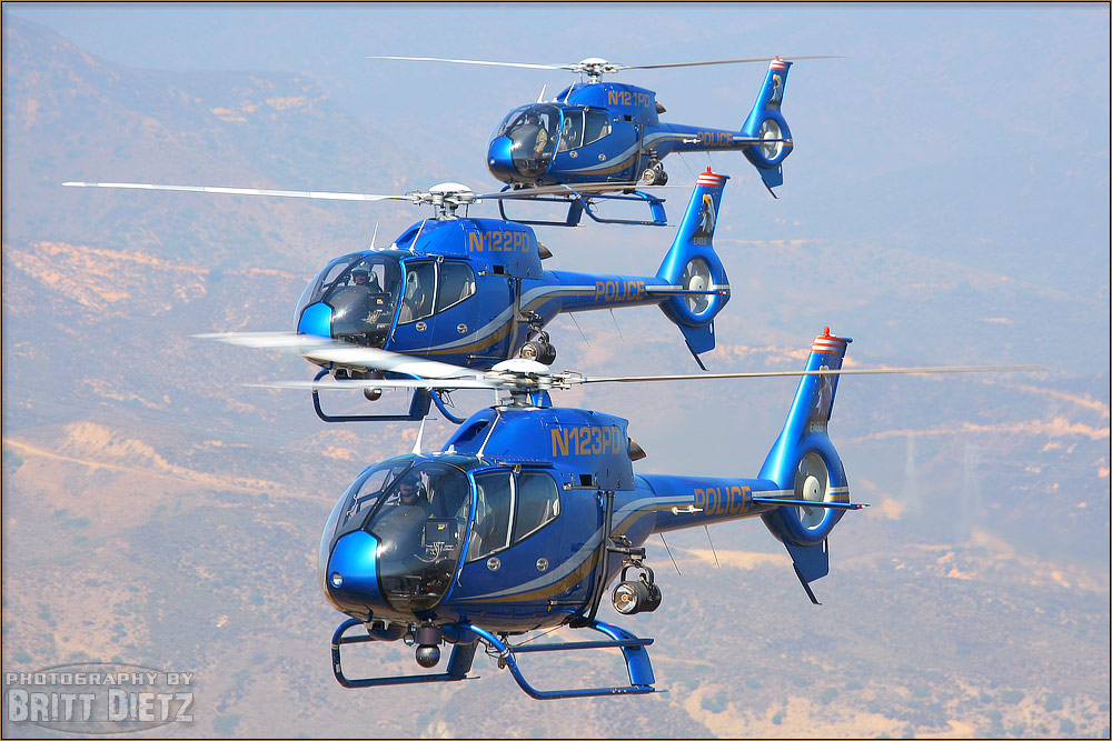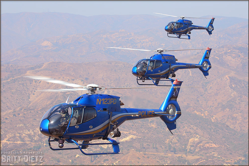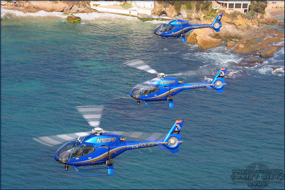 Photo gallery from the August 19, 2005 Air to Air Photo Shoot: Costa Mesa Police Department EC-120B Eurocopters - August 19, 2005 featuring 21 images. Photos taken by Aviation Photographer Britt Dietz.