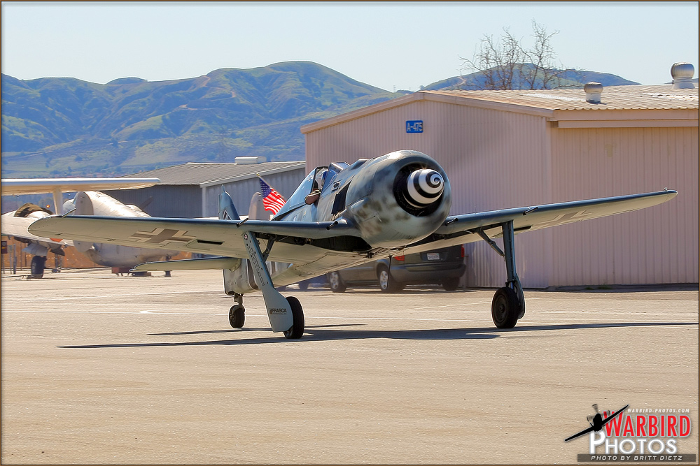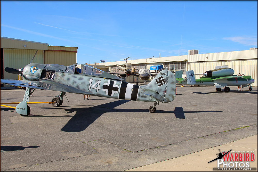 Featuring the Flug Werk-built Focke-Wulf FW-190 A8-N at the Planes of Fame Air Museum located at Chino Airport, California. The event's stars were two WW2 Luftwaffe pilots, one who flew ME-262s and the other HE 162As. Also featured on this event was the museum's freshly repainted Heinkel He 162A-1 Volksjager.